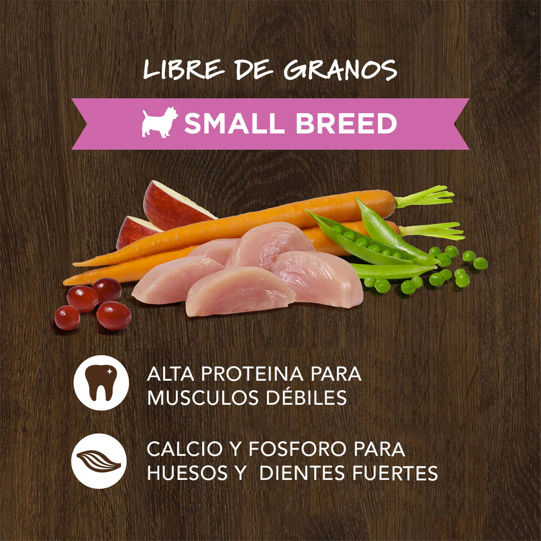 Alimento seco natural, alto en proteína y especialmente formulado para perros de razas pequeñas. Perfecto para mejorar su digestión, energía y mantener un pelaje sano. Nutrición real para consentir a tu mejor amigo como se merece 🐾